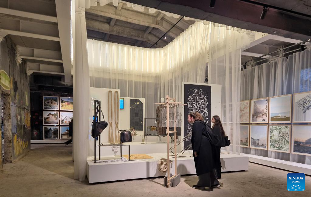 People visit the opening exhibition of Romanian Design Week (RDW) 2025 in Bucharest, Romania, May 16, 2025. The event, an annual festival dedicated to architecture, design and creativity, takes place from May 16 to 25 under the theme "Design of Tomorrow, Today." (Photo by Cristian Cristel/Xinhua)