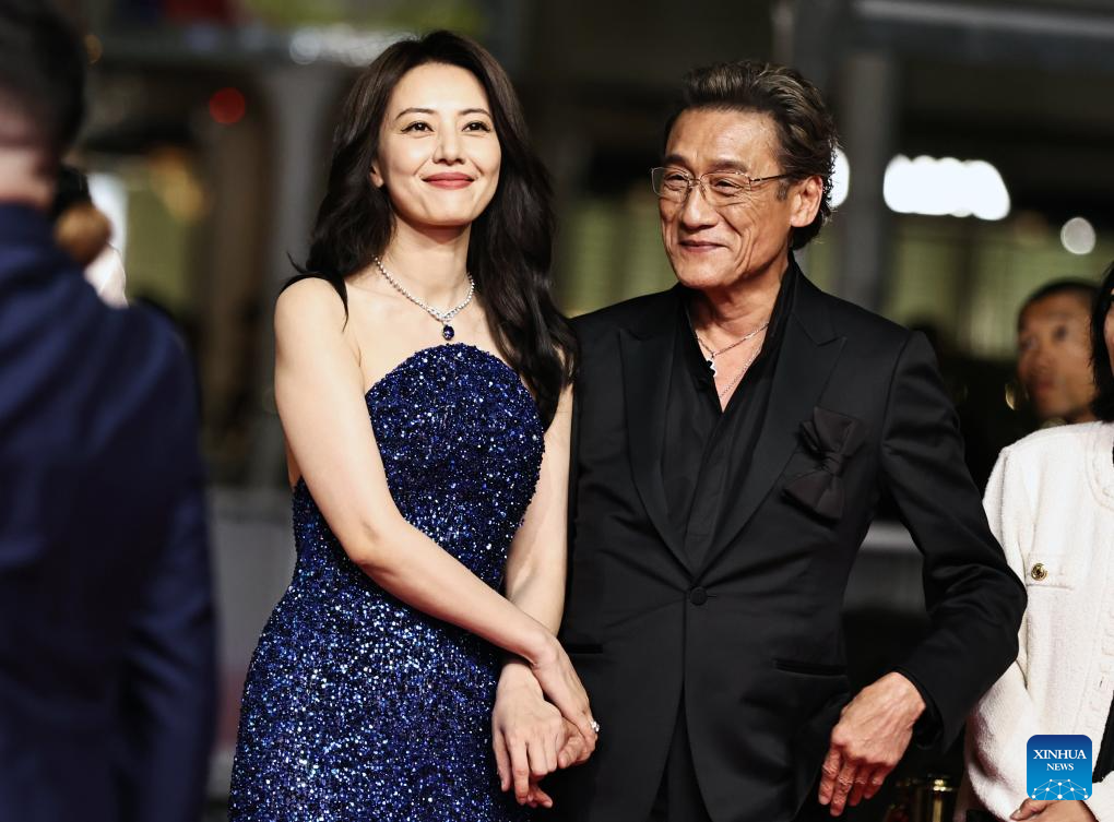 Main cast members Gao Yuanyuan (L) and Tony Leung Ka Fai arrive for the premiere of the film "Fung Lam Fo Saan (Sons of the Neon Night)" at the 78th edition of the Cannes Film Festival in Cannes, southern France, on May 16, 2025. (Xinhua/Gao Jing)