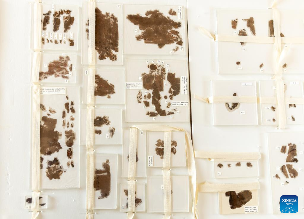 This photo taken on May 16, 2025 shows silk manuscripts at the Chinese Embassy in Washington, D.C., the United States. (Xinhua/Hu Yousong)