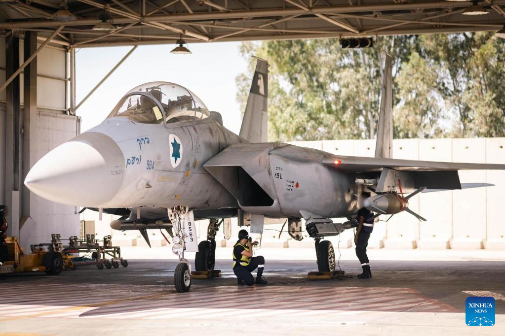 This photo released by the Israel Defense Forces on May 16, 2025 shows an Israeli military aircraft preparing for airstrike operations in Yemen. Israeli airstrikes on two Houthi-controlled ports in northwestern Yemen on Friday killed at least one person and wounded nine others, according to Houthi-run health authorities. (Israel Defense Forces/Handout via Xinhua)