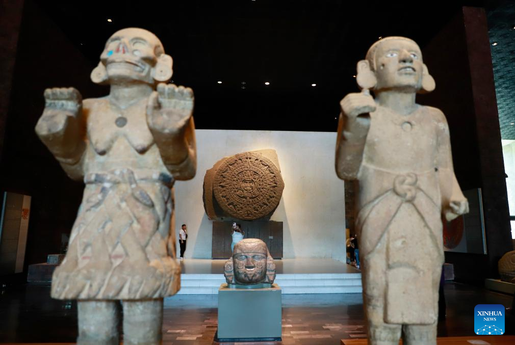 Exhibits are pictured at the National Museum of Anthropology in Mexico City, capital of Mexico, on May 15, 2025. The National Museum of Anthropology is located at Chapultepec Park in Mexico City and is one of the largest and most popular museums in Mexico, showcasing Mexico's cultural heritage from prehistoric times. Internatioanl Museum Day is celebrated on May 18 every year. (Photo by Pool Contreras/Xinhua)