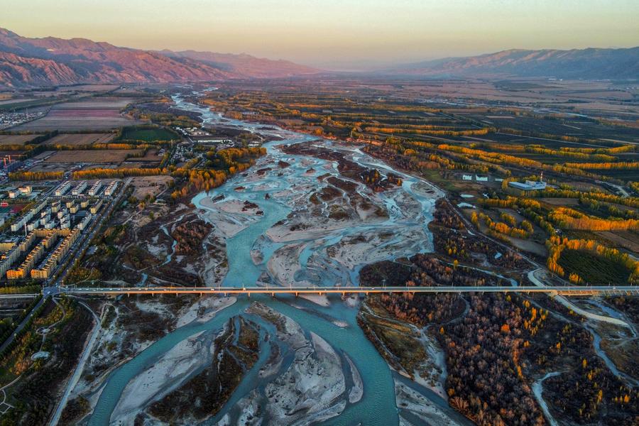 URUMQI, May 18 (Xinhua) -- I felt a gentle tremble as I climbed onto the viewing platform, partly because I was underdressed and partly due to the awe-inspiring view. From the distant snow-capped peaks to the green canyon below, and the majestic Guozigou Bridge in between, the breathtaking mountain scenery stretched as far as the eye could see.