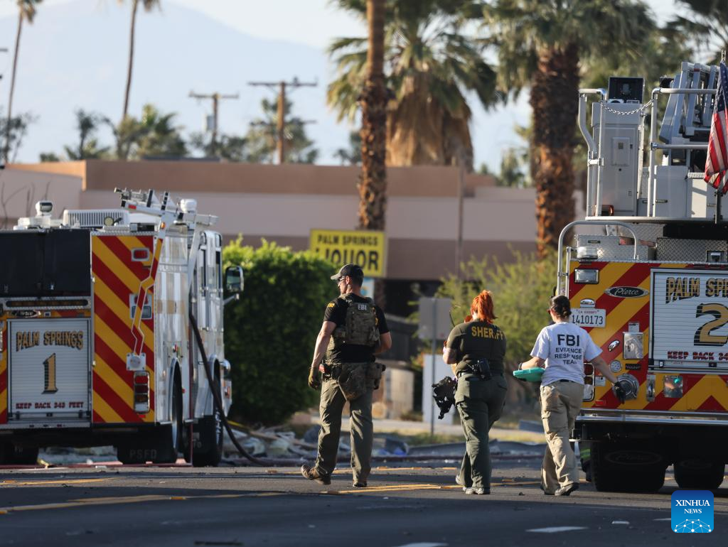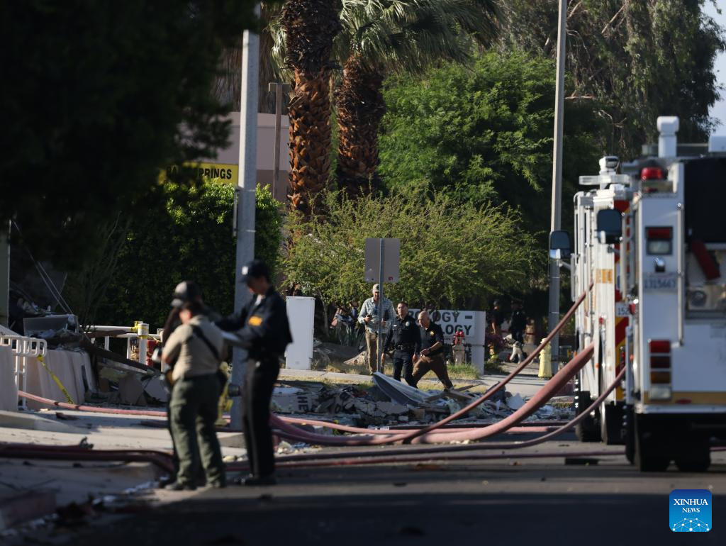 Authorities investigate near the site of an explosion in Palm Springs, California, the United States, on May 17, 2025. At least one person was killed and five others injured on Saturday in an explosion outside a fertility clinic in the desert resort city of Palm Springs, California, according to authorities. (Photo by Qiu Chen/Xinhua)