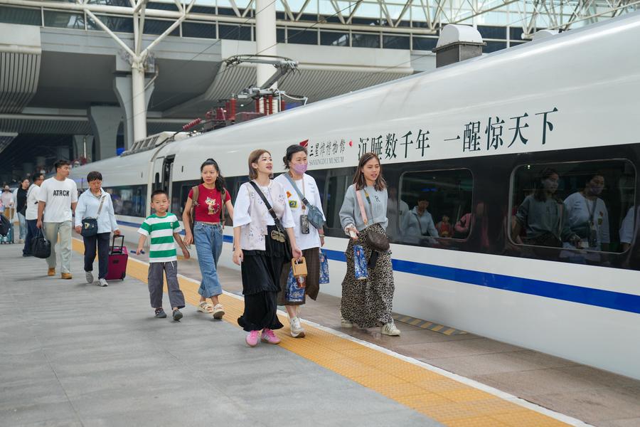 Jointly developed by China Railway Chengdu Group Co., Ltd. and the Sanxingdui Museum, the themed train aims to offer an immersive cultural experience for both domestic and international travelers, according to Peng Danlin with China Railway Chengdu Group.