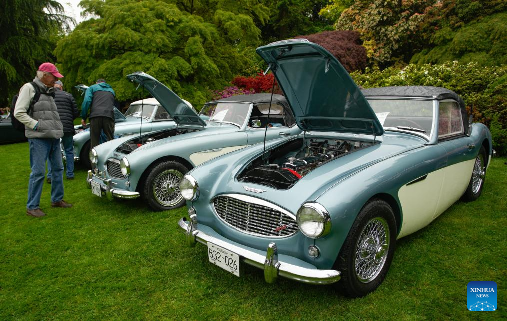 Classic cars are displayed during the 2025 Vancouver All British Field Meet classic car show at VanDusen Botanical Garden in Vancouver, British Columbia, Canada, May 17, 2025. The annual event featured over 400 classic British vehicles, attracting car enthusiasts and collectors from across the region. (Photo by Liang Sen/Xinhua)