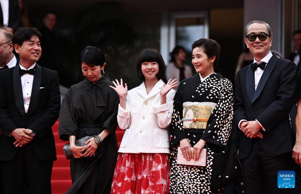 Cast members of the film Renoir are pictured after the film's premiere during the 78th edition of the Cannes Film Festival in Cannes, southern France, on May 17, 2025. (Xinhua/Gao Jing)