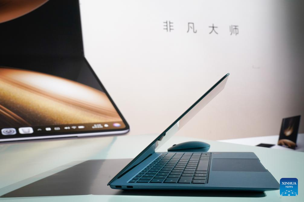 This photo shows the HarmonyOS-powered Huawei MateBook Pro. Chinese tech giant Huawei on Monday unveiled two laptops powered by HarmonyOS, marking the debut of its self-developed operating system on personal computers (PCs). The launch of the Huawei MateBook Pro and MateBook Fold Ultimate Design signals the company's push to expand HarmonyOS beyond smartphones and tablets into a PC market long led by Microsoft's Windows and Apple's macOS. (Xinhua/Xu Bingjie)