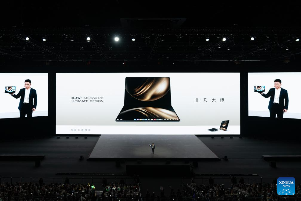 The launch of the Huawei MateBook Pro and MateBook Fold Ultimate Design signals the company's push to expand HarmonyOS beyond smartphones and tablets into a PC market long led by Microsoft's Windows and Apple's macOS. (Xinhua/Xu Bingjie)