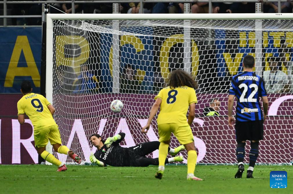 Lazio's Pedro (L) scores his second goal during a Serie A football match between Inter Milan and Lazio in Milan, Italy, May 18, 2025. (Photo by Alberto Lingria/Xinhua)