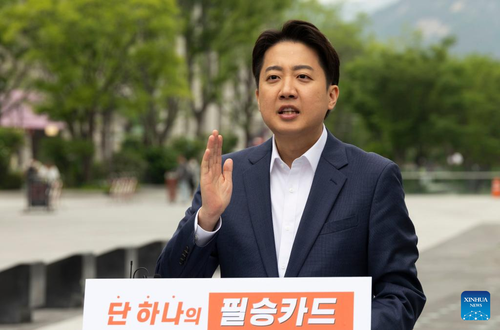 Lee Jun-seok, presidential candidate of New Reform Party, speaks during an election campaign in Seoul, South Korea, May 19, 2025. (Photo by Jun Hyosang/Xinhua)