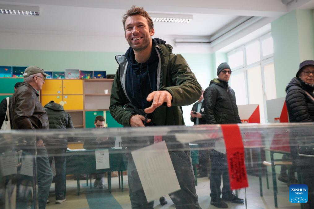 A voter casts his ballot at a polling station in Warsaw, Poland, on May 18, 2025. No candidate secured more than 50 percent of vote in the first round of Poland's presidential election on Sunday, according to exit polls. A runoff will be held on June 1 between Civic Coalition candidate Rafal Trzaskowski and independent candidate Karol Nawrocki. The Ipsos exit polls showed that Trzaskowski garnered 30.8 percent of the vote, compared to Nawrocki's 29.1 percent. (Photo by Jaap Arriens/Xinhua)