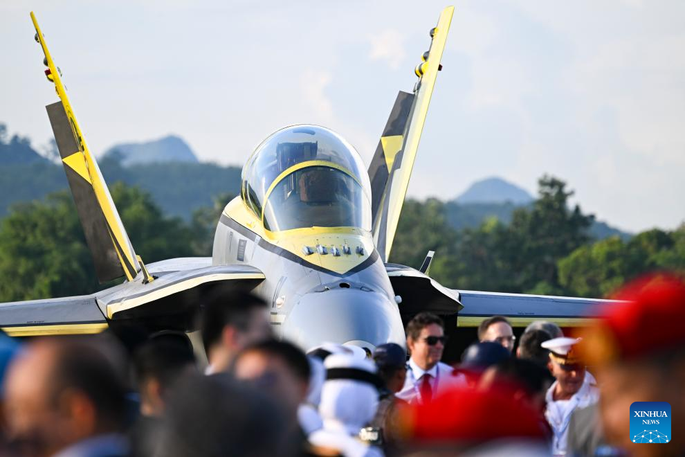 An aircraft is pictured at the opening ceremony of the 17th edition of the Langkawi International Maritime and Aerospace Exhibition (LIMA) in Langkawi, Malaysia, May 20, 2025. The 17th edition of the Langkawi International Maritime and Aerospace Exhibition (LIMA) kicked off here on Tuesday, with defense and associated companies from around the globe eyeing a higher profile in Asia's defense sector.(Xinhua/Cheng Yiheng)