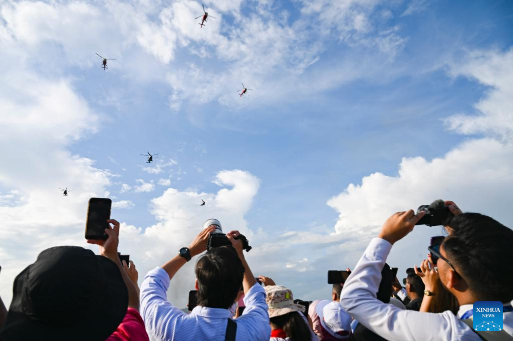Aircraft are about to take off at the opening ceremony of the 17th edition of the Langkawi International Maritime and Aerospace Exhibition (LIMA) in Langkawi, Malaysia, May 20, 2025. The 17th edition of the Langkawi International Maritime and Aerospace Exhibition (LIMA) kicked off here on Tuesday, with defense and associated companies from around the globe eyeing a higher profile in Asia's defense sector.(Xinhua/Cheng Yiheng)