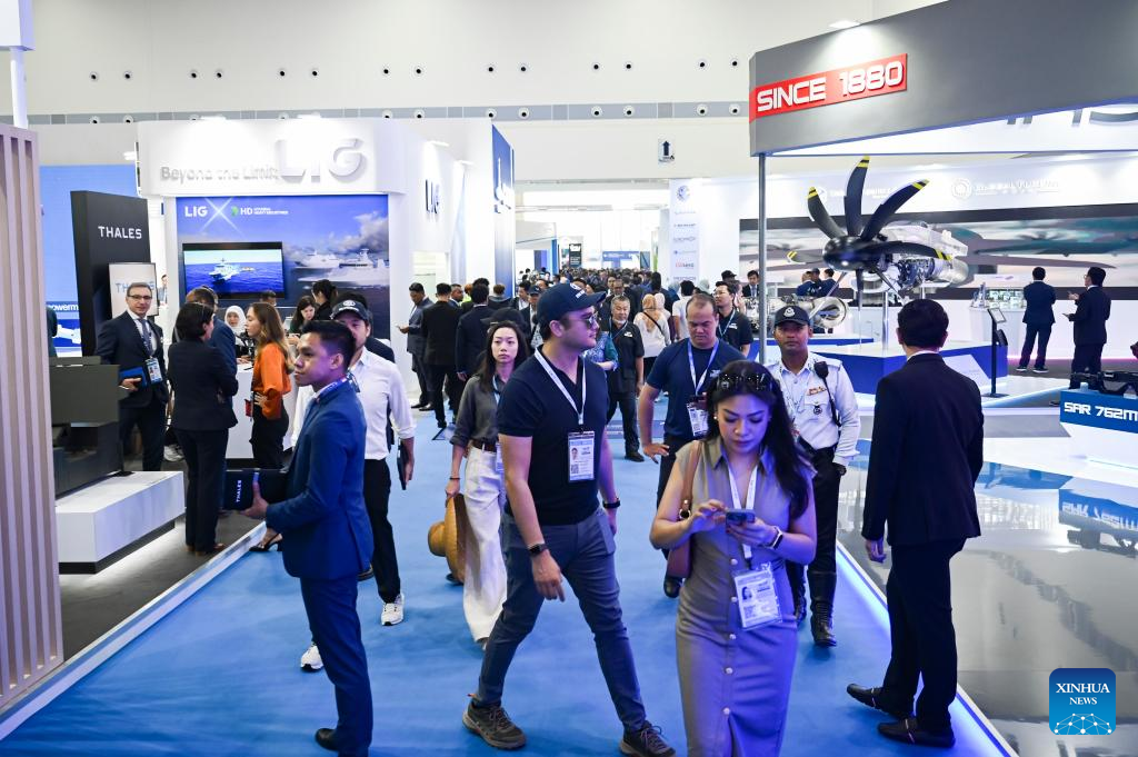 People visit the 17th edition of the Langkawi International Maritime and Aerospace Exhibition (LIMA) in Langkawi, Malaysia, May 20, 2025. The 17th edition of the Langkawi International Maritime and Aerospace Exhibition (LIMA) kicked off here on Tuesday, with defense and associated companies from around the globe eyeing a higher profile in Asia's defense sector.(Xinhua/Cheng Yiheng)