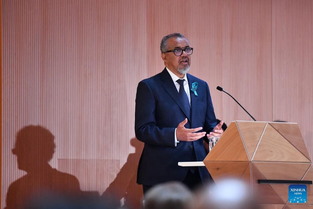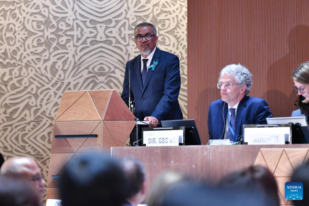 World Health Organization Director-General Tedros Adhanom Ghebreyesus speaks during the 78th World Health Assembly in Geneva, Switzerland, May 19, 2025. The 78th World Health Assembly kicked off here on Monday. (Xinhua/Lian Yi)