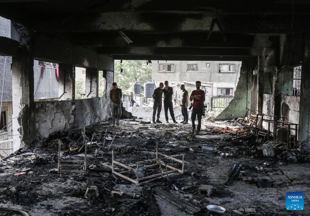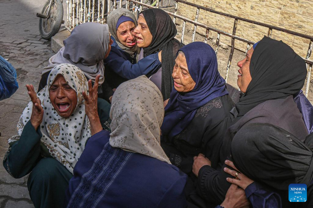 Around Gaza City, 13 people, including women and children, were killed and several others injured in an Israeli airstrike on the Musa bin Nusair school, east of the city, which shelters displaced people, whereas a woman and a man were killed in two separate attacks in the city, Basal told Xinhua.