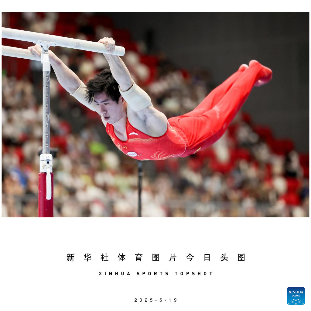 Zhang Boheng of Hunan competes in the parallel bars match of the men's all-around final at the National Gymnastics Championships 2025 in Nanning, south China's Guangxi Zhuang Autonomous Region, May 19, 2025. (Xinhua/Xu Yanan)