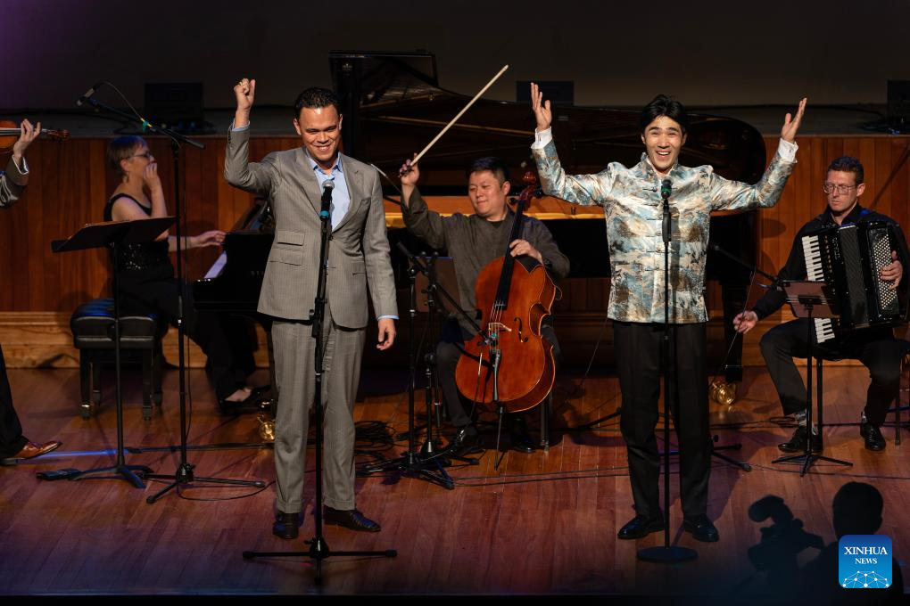 Artists perform at the "Voices of Our Ancestors" concert in Auckland, New Zealand, May 18, 2025. (Photo by Wu Jiaxiang/Xinhua)