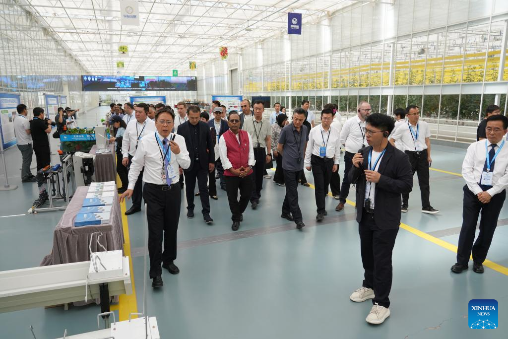 Attendees of the 2025 SCO (the Shanghai Cooperation Organization) Forum on Poverty Reduction and Sustainable Development visit a demonstration base for intelligent agriculture in Yangling, northwest China's Shaanxi Province, May 19, 2025. The 2025 SCO (the Shanghai Cooperation Organization) Forum on Poverty Reduction and Sustainable Development opened Tuesday in Xi'an, northwest China's Shaanxi Province. (Xinhua/Shao Rui)