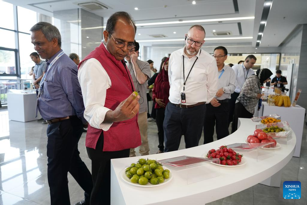 Attendees of the 2025 SCO (the Shanghai Cooperation Organization) Forum on Poverty Reduction and Sustainable Development visit an innovation center of seed industry in Yangling, northwest China's Shaanxi Province, May 19, 2025. The 2025 SCO (the Shanghai Cooperation Organization) Forum on Poverty Reduction and Sustainable Development opened Tuesday in Xi'an, northwest China's Shaanxi Province. (Xinhua/Shao Rui)