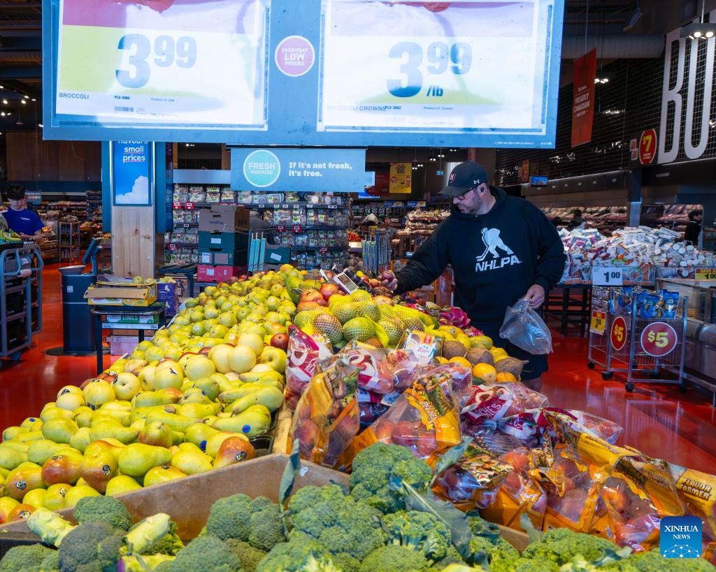 A man shops for fruit at a supermarket in Toronto, Canada, on May 20, 2025. Canada's Consumer Price Index (CPI) rose 1.7 percent year over year in April, down from a 2.3 percent increase in March, Statistics Canada said on Tuesday. (Photo by Zou Zheng/Xinhua)
