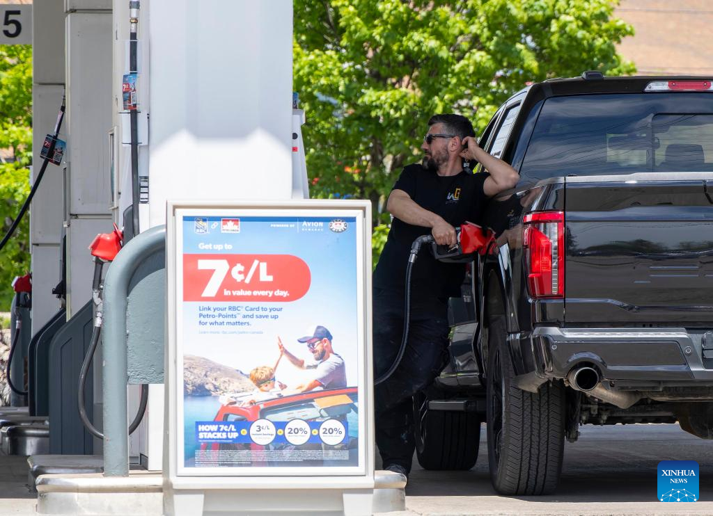 A man fuels a vehicle at a gas station in Toronto, Canada, on May 20, 2025. Canada's Consumer Price Index (CPI) rose 1.7 percent year over year in April, down from a 2.3 percent increase in March, Statistics Canada said on Tuesday. (Photo by Zou Zheng/Xinhua)