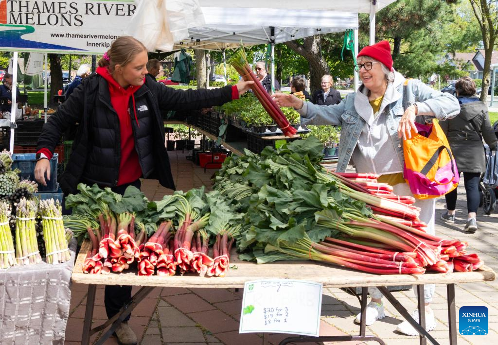 People shop for groceries at a farmers' market in Toronto, Canada, on May 20, 2025. Canada's Consumer Price Index (CPI) rose 1.7 percent year over year in April, down from a 2.3 percent increase in March, Statistics Canada said on Tuesday. (Photo by Zou Zheng/Xinhua)