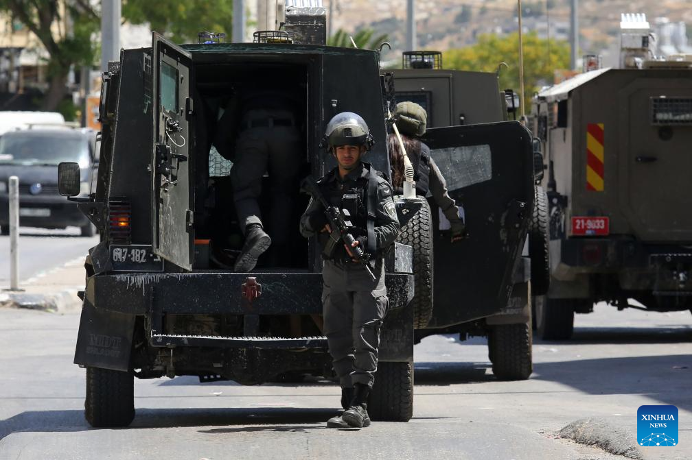 Members of Israeli forces are seen during a military operation in the Askar refugee camp, east of Nablus in the northern West Bank, on May 20, 2025. (Photo by Nidal Eshtayeh/Xinhua)