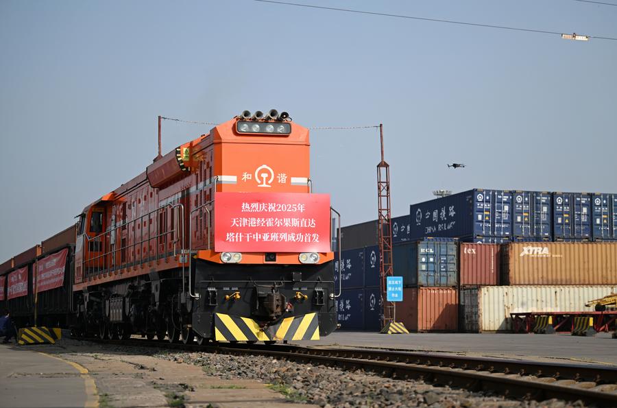 TIANJIN, May 21 (Xinhua) -- The Central Asia freight train bound for Tashkent, Uzbekistan, departed from north China's port city Tianjin around 4 p.m. Tuesday, marking the first Tianjin-Central Asia freight train service in 2025.