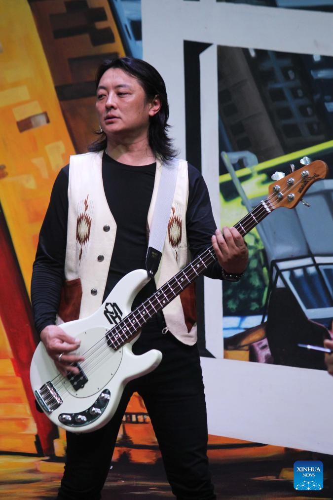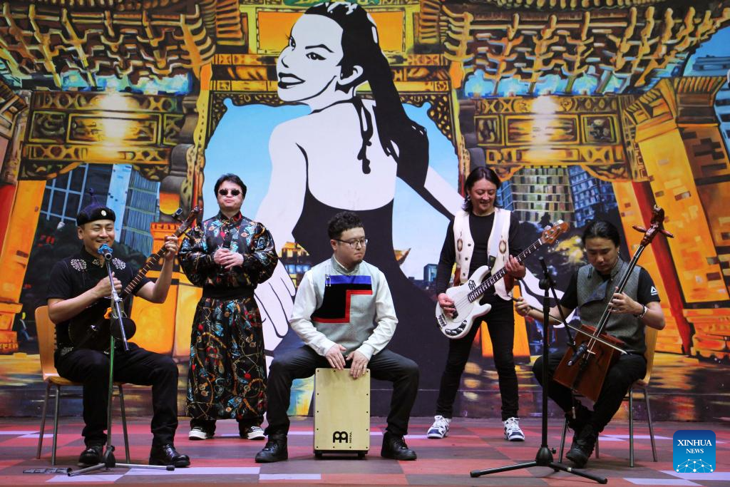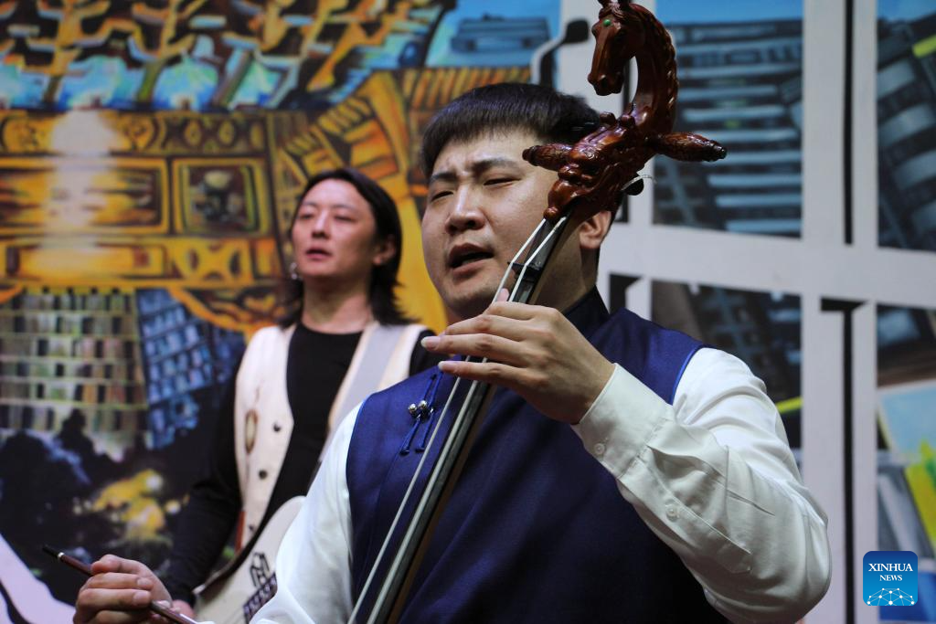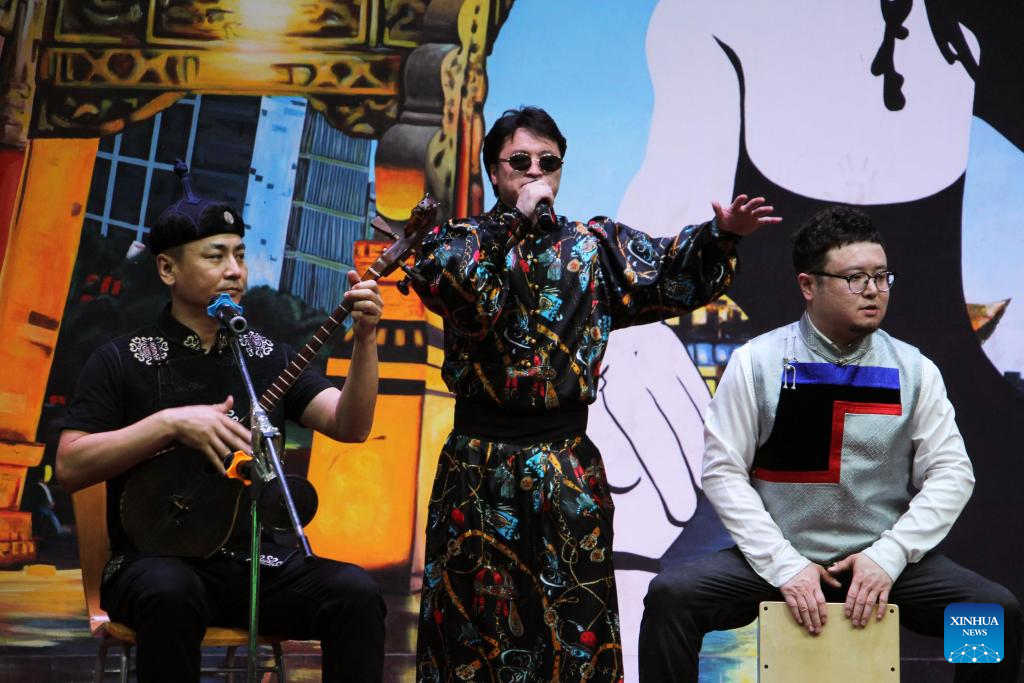Members of the Nair Band perform in the Chinese Cultural Center of Benin, in Cotonou, Benin, May 20, 2025. A concert titled "Heavenly Melody: Echoes from the Grasslands", featuring artists from north China's Inner Mongolia Autonomous Region, was held at the Chinese Cultural Center of Benin, in Cotonou, on Tuesday night. (Photo by Seraphin Zounyekpe/Xinhua)