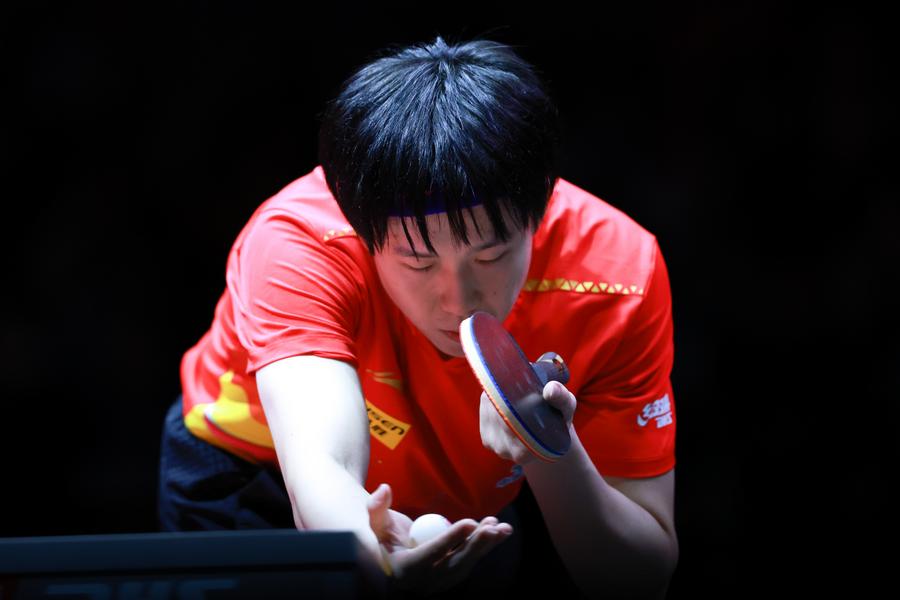 DOHA, May 20 (Xinhua) -- A composed Wang Chuqin overpowered Hong Kong player Wong Chun Ting in the men's singles third round of the World Table Tennis Championships on Tuesday.