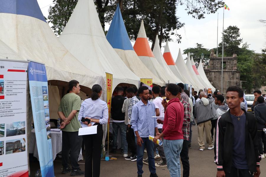 "Finding jobs relevant to our field of study has become a challenge these days. Job fairs like this serve as an important platform as we meet potential employers directly, and it also builds confidence," Tiruneh told Xinhua as he approached the booth of a Chinese construction company.