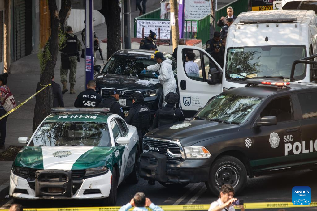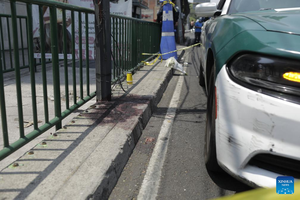 Photo taken on May 20, 2025 shows the site of an attack against Mexico City Mayor Clara Brugada's personal secretary Ximena Guzman and adviser Jose Munoz, in Mexico City, Mexico. Two close collaborators of Mexico City Mayor Clara Brugada were murdered in an attack on Tuesday morning: her personal secretary Ximena Guzman and her adviser Jose Munoz. (Str/Xinhua)