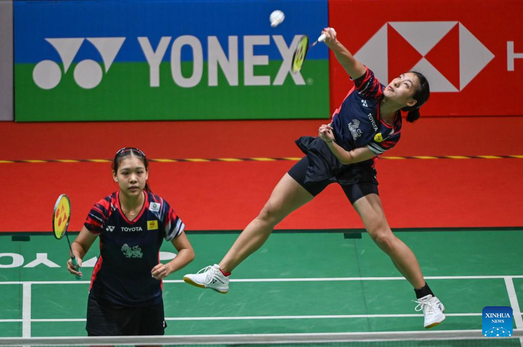 (250522) -- KUALA LUMPUR, May 22, 2025 (Xinhua) -- Tidapron Kleebyeesun/Nattamon Laisuan (R) compete during the women's doubles round of 16 match between Liu Shengshu/Tan Ning of China and Tidapron Kleebyeesun/Nattamon Laisuan of Thailand at 2025 Malaysia Masters badminton tournament in Kuala Lumpur, Malaysia, May 22, 2025. (Photo by Chong Voon Chung/Xinhua)