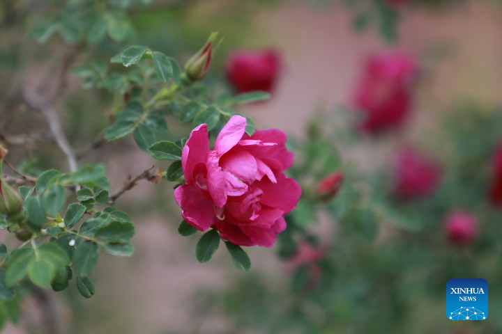 LANZHOU, May 22 (Xinhua) -- Nestled in the barren Loess Plateau, the small town of Kushui in northwest China's Gansu Province bursts into a sea of vibrant roses every mid-May.