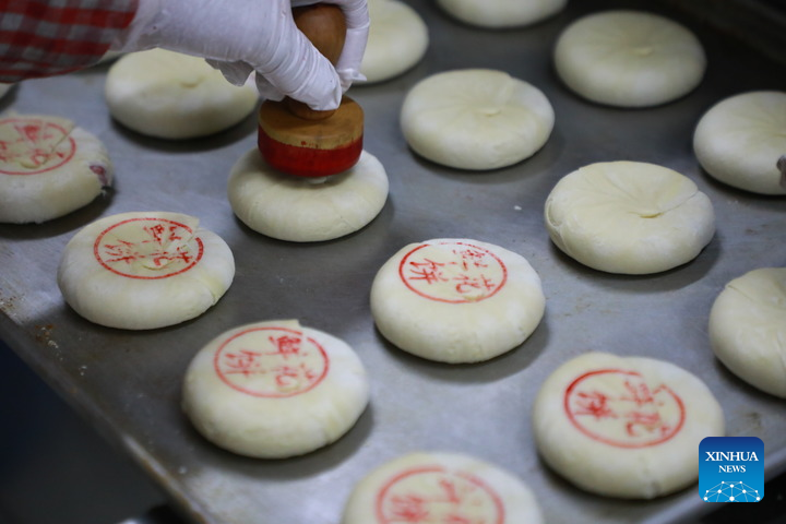 Flower cakes with edible roses inside are seen in a workshop of a company in Lanzhou, northwest China's Gansu Province, May 8, 2025. (Photo by Tong Zhangwei/Xinhua)