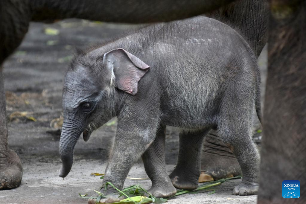 A month-old female baby Sumatran elephant is seen in Batu Secret Zoo, Batu, East Java, Indonesia, May 21, 2025. A female baby Sumatran elephant was born on April 21 here. (Photo by Aman Rochman/Xinhua)