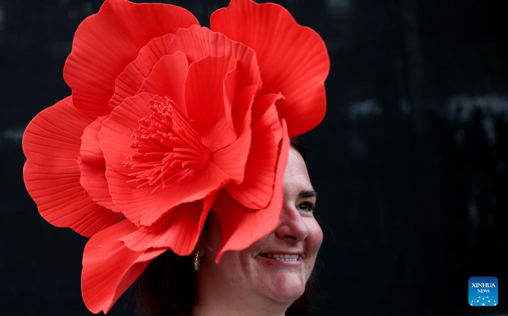 A woman wearing a floral headdress attends the RHS (Royal Horticultural Society) Chelsea Flower Show in London, Britain, on May 20, 2025. The annual show opened to the public here on Tuesday. (Xinhua/Li Ying)