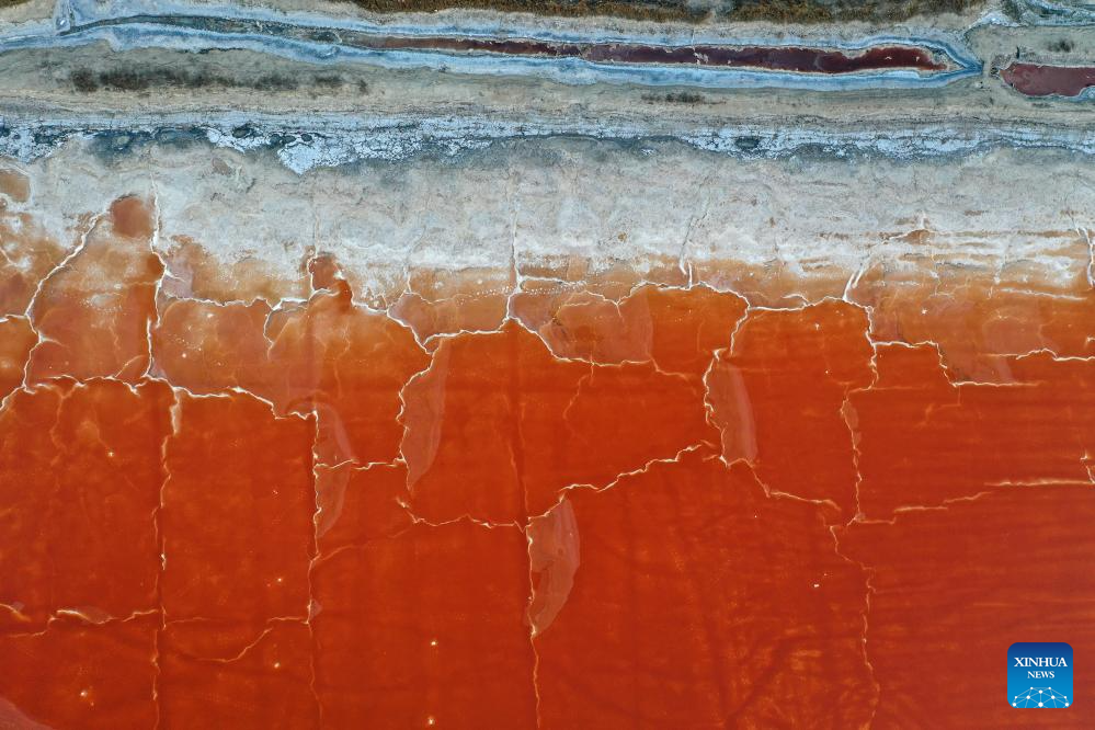 A drone photo taken on May 20, 2025 shows the scenery at the salt lake in Yuncheng, north China's Shanxi Province. (Xinhua/Zhan Yan)