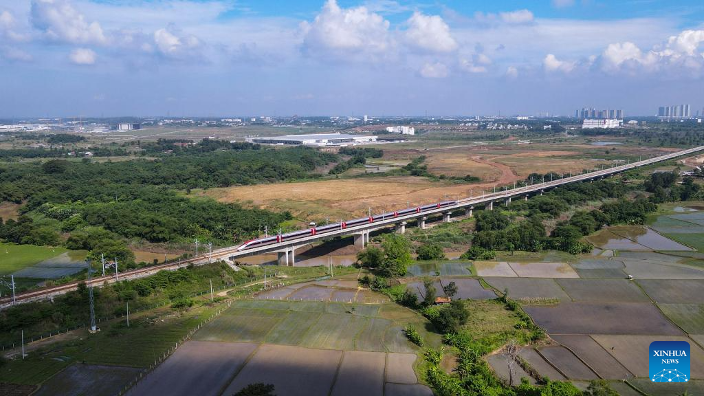 The Jakarta-Bandung high-speed railway, locally known as Whoosh, has served more than 9 million passengers over 19 months since its inauguration in October 2023. (Xinhua/Xu Qin)