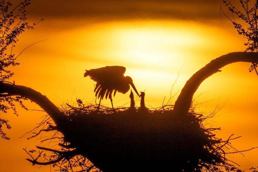 An oriental white stork feeds its babies in sunrise at the Zhalong National Nature Reserve, northeast China's Heilongjiang Province, May 18, 2025. (Photo by Wang Yonggang/Xinhua)Sun Lijuan combs a doll's hair inside her shop at the Yiwu International Trade Mart in Yiwu, east China's Zhejiang Province, May 20, 2025. Sun Lijuan is among the first merchants to utilize artificial intelligence (AI) for foreign trade at the Yiwu International Trade Mart in Yiwu, an international hub for the production and trade of small commodities. Her shop, Hongsheng Toys, sells lifelike dolls and plush toys to international customers. In recent years, the rapid development of AI has boosted her orders and helped reduce operational costs. With the help of AI, Sun is able to present product-selling videos in 36 different languages to global viewers. Even the mouth movements of speakers in the videos can be adapted in line with the pronunciation. (Xinhua/Han Chuanhao)A farmer checks the growth of wheat in Yulong Naxi Autonomous County in Lijiang City, southwest China's Yunnan Province, May 21, 2025. The traditional Chinese solar term Xiaoman (Grain Buds) falls on May 21 this year. (Photo by Zhao Qingzu/Xinhua)A drone photo taken on May 20, 2025 shows the scenery at the salt lake in Yuncheng, north China's Shanxi Province. (Xinhua/Zhan Yan)An aerial drone photo taken on May 20, 2025 shows workers of State Grid Anhui Electric Power Co., Ltd. installing a camera near the nest of oriental white storks in Huoqiu County, east China's Anhui Province. In early May this year, workers discovered a nest of oriental white stork, a migratory bird under first-class state protection, on the newly-built transmission tower. The State Grid Anhui Electric Power Co., Ltd. has installed high-definition cameras near the nest, assigned designated staff to track and protect the oriental white storks, and postponed the construction progress according to the breeding timeline of the storks. (Photo by Zhao Xianfu/Xinhua)A drone photo shows a car racing during Stage 1 of the 2025 Taklimakan Rally in Wensu County, Aksu Prefecture, northwest China's Xinjiang Uygur Autonomous Region, May 21, 2025. (Xinhua/Hu Xingyu)French actor Daniel Auteuil poses during a photocall for the film "Vie privee" at the 78th edition of the Cannes Film Festival in Cannes, southern France, on May 21, 2025. (Xinhua/Gao Jing)A woman wearing a floral headdress attends the RHS (Royal Horticultural Society) Chelsea Flower Show in London, Britain, on May 20, 2025. The annual show opened to the public here on Tuesday. (Xinhua/Li Ying)Ultra-Orthodox Jews harvest wheat as part of an annual ritual ahead of the Jewish holiday of Shavuot, in a field near Jerusalem on May 20, 2025. (Xinhua/Chen Junqing)Wang Chuqin checks his racket before the mixed doubles round of 32 match between Wang Chuqin/Sun Yingsha of China and Hugo Calderano/Bruna Takahashi of Brazil at ITTF World Table Tennis Championships Finals Doha 2025 in Doha, Qatar, May 19, 2025. (Xinhua/Xiao Yijiu)■