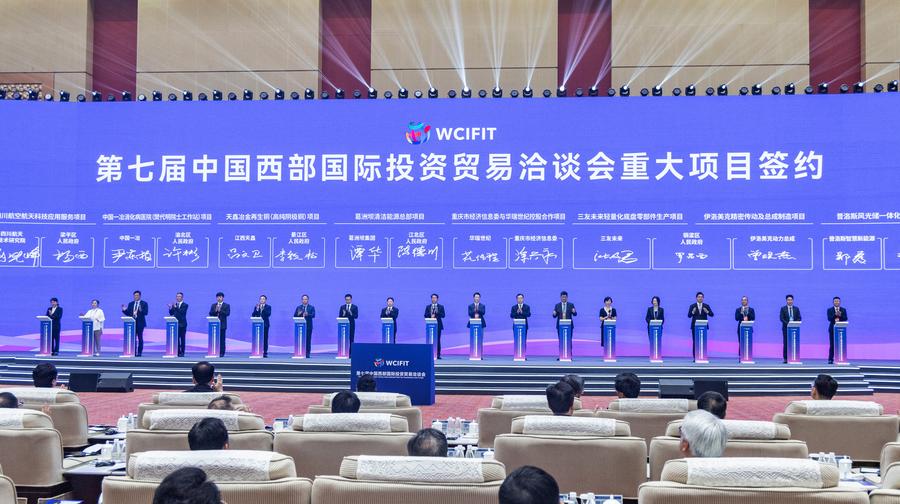 CHONGQING, May 22 (Xinhua) -- The 7th Western China International Fair for Investment and Trade kicked off in southwest China's Chongqing Municipality on Thursday, with on-site project agreements exceeding 200 billion yuan (about 27.8 billion U.S. dollars).
