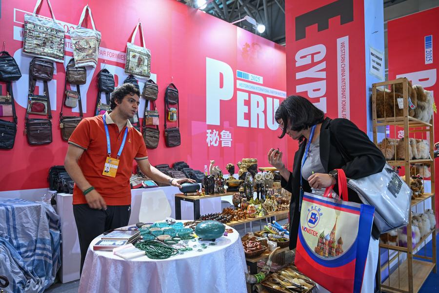 Visitors experience a new energy vehicle during the 7th Western China International Fair for Investment and Trade in southwest China's Chongqing Municipality, May 22, 2025. (Xinhua/Huang Wei)A carpet merchant from Afghanistan introduces his products during the 7th Western China International Fair for Investment and Trade in southwest China's Chongqing Municipality, May 22, 2025. (Xinhua/Chen Cheng)A foreign merchant promotes his products to a visitor during the 7th Western China International Fair for Investment and Trade in southwest China's Chongqing Municipality, May 22, 2025. (Xinhua/Chen Cheng)Visitors look at an unmanned aerial vehicle during the 7th Western China International Fair for Investment and Trade in southwest China's Chongqing Municipality, May 22, 2025. (Xinhua/Chen Cheng)■