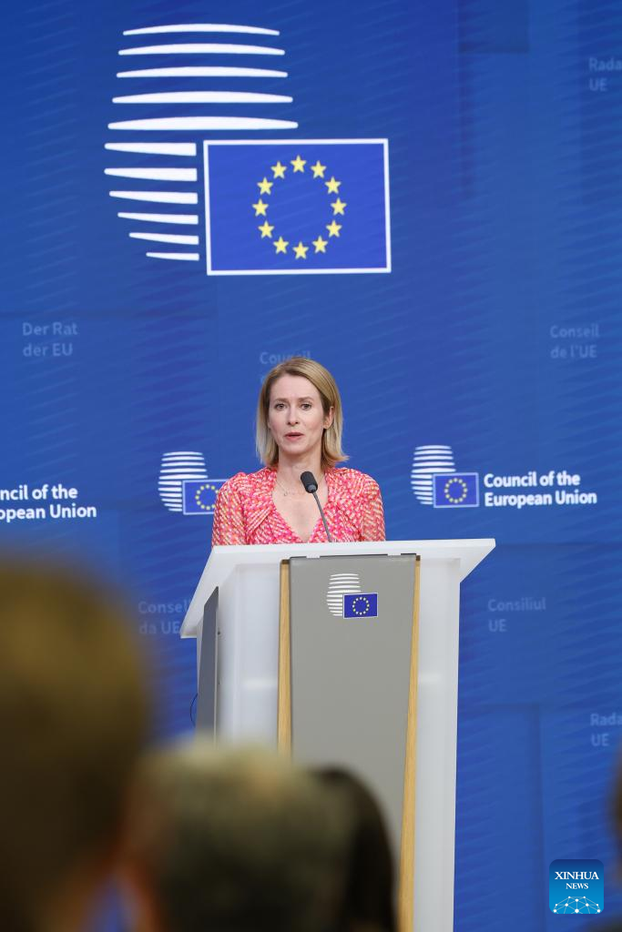 Following a meeting of the bloc's foreign ministers, EU foreign policy chief Kaja Kallas said that there is a "strong majority" in favour of reviewing Article 2 of the EU-Israel Association Agreement, which has been in force since 2000, and stipulates that cooperation must be based on "respect for human rights." (European Union/Handout via Xinhua)