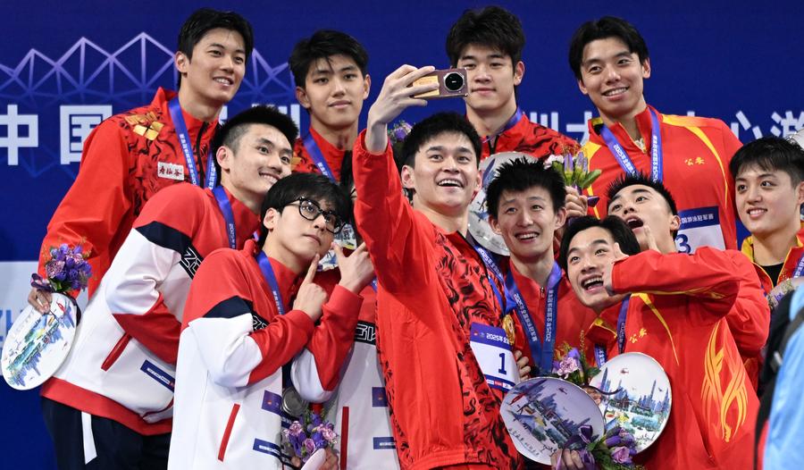 Golden snub-nosed monkeys are pictured in the Pingwu Sichuan golden snub-nosed monkey popular science education base in Pingwu County, Mianyang City of southwest China's Sichuan Province, May 21, 2025. Located within the Xiaohegou Nature Reserve, a provincial-level nature reserve in Sichuan Province, Pingwu Sichuan golden snub-nosed monkey popular science education base is home to over 40 Sichuan golden snub-nosed monkeys. According to the latest monitoring data of 2024, Xiaohegou Nature Reserve is the habitat of about 1,000 Sichuan golden snub-nosed monkeys. (Xinhua/Jiang Hongjing)Villager Li Juncan gathers the freshly harvested wheat at Hezhuang Village of Lumiao Township in Xiping County, Zhumadian City, central China's Henan Province, May 21, 2025. (Photo by Zhao Yongtao/Xinhua)This video screenshot taken at Beijing Aerospace Control Center on May 22, 2025 shows Shenzhou-20 astronaut Chen Dong leaving China's orbiting space station for extravehicular activities. The Shenzhou-20 crew on board China's orbiting space station completed their mission's first series of extravehicular activities on Thursday, according to the China Manned Space Agency. (Xinhua/Li Yanchen)Two senior high school students compete in an arm wrestling competition at Gaomi No. 5 Middle School in Gaomi City, east China's Shandong Province, May 22, 2025. As the college entrance examinations approach, schools across the country have organized various forms of stress-relieving activities to help senior high school students relax and get ready for the exams. (Photo by Li Haitao/Xinhua)This photo taken on May 22, 2025 shows a view of Chongqing Municipality, southwest China. In recent years, Chongqing has revitalized its riverfronts along the Yangtze and Jialing Rivers, integrating nature and urban development to showcase its iconic landscape featuring mountains, rivers, cityscape and bridges. (Xinhua/Wang Quanchao)A newly-wed couple is pictured during a group wedding on the south square of the Shenyang Palace Museum in Shenyang, northeast China's Liaoning Province, May 22, 2025. A total of 52 newly-wed couples participated in a group marriage ceremony here Thursday. (Xinhua/Li Gang)A staff member of Yunnan Forest Nature Center changes food and water for green peafowl chicks in Kunming, southwest China's Yunnan Province, May 19, 2025. Four green peafowl chicks were recently hatched naturally in a wild training base in southwest China's Yunnan Province, marking the first successful natural breeding of the captive-bred species in a simulated wild environment and major progress in the country's rewilding efforts for the rare birds. (Xinhua/Hu Chao)A staff member restores cultural relics at an archaeology workstation of the Dawenkou site in Tai'an, east China's Shandong Province, May 20, 2025. The 2,600-square-meter Dawenkou Site Museum in Tai'an shows the origin, development, connotation and importance of the Dawenkou Culture (4000 B.C.-2600 B.C.), a culture of the late Neolithic Age, to the public through relics display, scene restoration and multimedia demonstration, etc. (Xinhua/Chen Shuo)An aerial drone photo taken on May 22, 2025 shows the sunrise scenery in Xining, northwest China's Qinghai Province. (Xinhua/Qi Zhiyue)This photo taken on May 22, 2025 shows the site where two Israeli embassy employees were killed in Washington D.C., the United States. Two Israeli embassy employees were killed late Wednesday near a Jewish museum in Washington D.C., U.S. Homeland Security Secretary Kristi Noem said. (Xinhua/Hu Yousong)Gold medalist Sun Yang (C) of Team Zhejiang poses for photos with other medalists during the awarding ceremony for the men's 4x200 freestyle relay final at the 2025 National Swimming Championships in Shenzhen, south China's Guangdong Province, May 22, 2025. (Xinhua/Xia Yifang)■