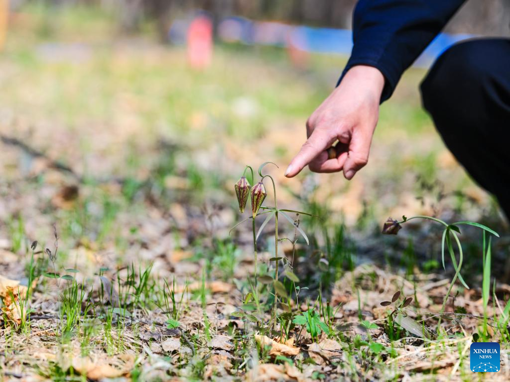 This photo taken on May 21, 2025 shows fritillaria meximowiczii, a second-class protected plant in China, at Chaihekou Forest Farm in Zhalantun City, north China's Inner Mongolia Autonomous Region. (Xinhua/Ma Jinrui)