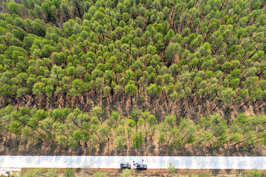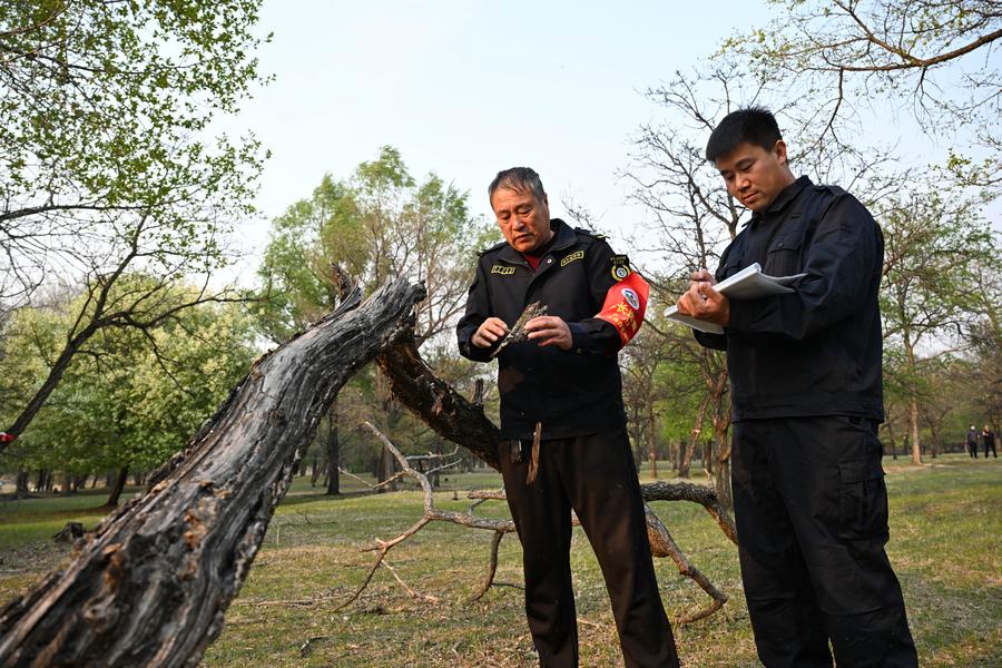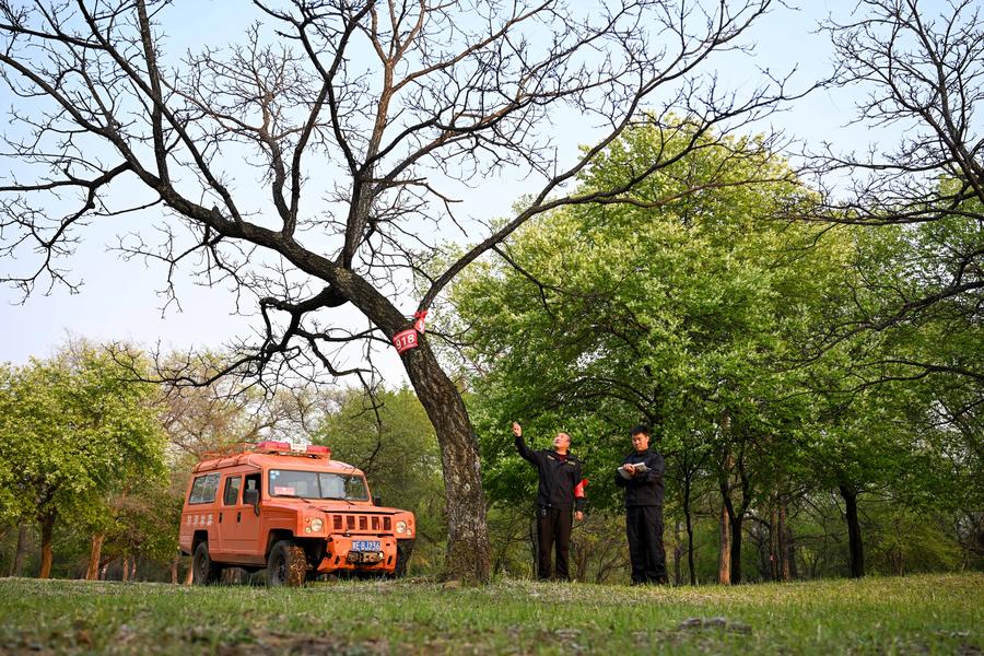 Forest ranger Cao Haihong checks an Amur Cork tree, a second-class protected plant in China, at Baimaogou Forest Farm in Zhalantun City, north China's Inner Mongolia Autonomous Region, May 20, 2025. (Xinhua/Ma Jinrui)An aerial drone photo taken on May 21, 2025 shows forest rangers conducting patrols at Chaihekou Forest Farm in Zhalantun City, north China's Inner Mongolia Autonomous Region. (Xinhua/Ma Jinrui)Forest ranger Cao Haihong (L) and his colleague monitor growth conditions of an Amur Cork tree, a second-class protected plant in China, at Baimaogou Forest Farm in Zhalantun City, north China's Inner Mongolia Autonomous Region, May 20, 2025. (Xinhua/Bei He)Forest ranger Cao Haihong (L) and his colleague record a naturally-dead Amur Cork tree, a second-class protected plant in China, at Baimaogou Forest Farm in Zhalantun City, north China's Inner Mongolia Autonomous Region, May 20, 2025. (Xinhua/Bei He)