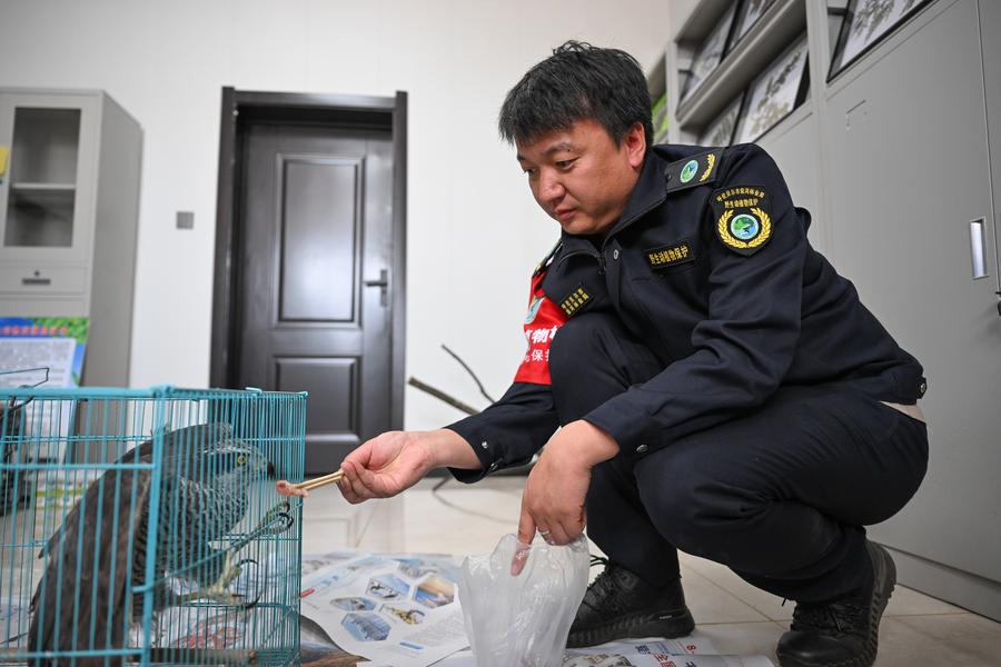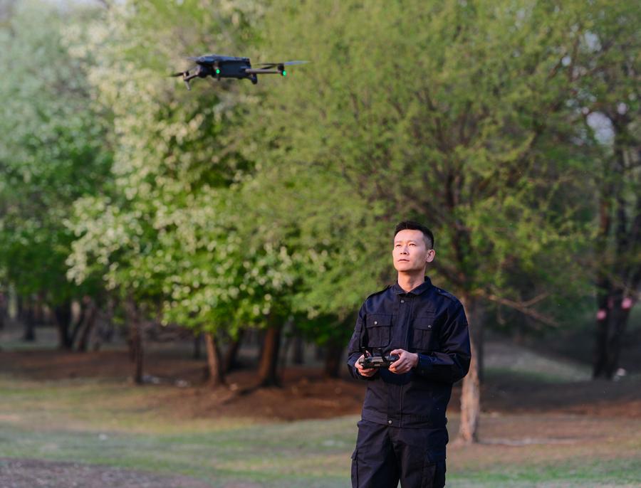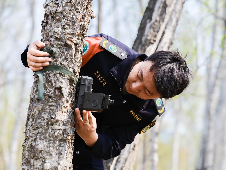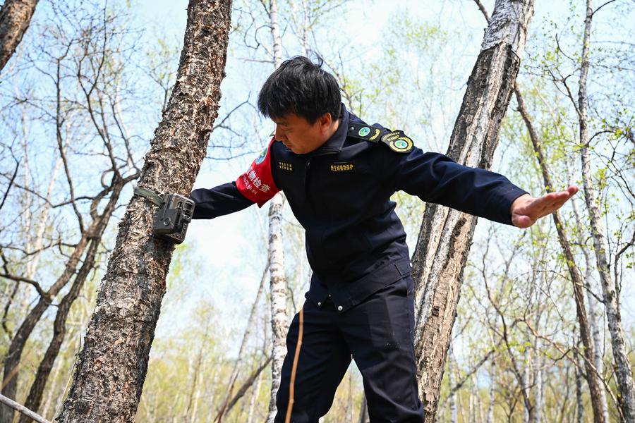 Forest ranger Yi Mingzhe equips a tree with an infrared camera at Chaihekou Forest Farm in Zhalantun City, north China's Inner Mongolia Autonomous Region, May 21, 2025. (Xinhua/Bei He)Forest ranger Yi Mingzhe equips a tree with an infrared camera at Chaihekou Forest Farm in Zhalantun City, north China's Inner Mongolia Autonomous Region, May 21, 2025. (Xinhua/Ma Jinrui)Forest ranger Yang Lijun educates motorists on wildfire prevention at Baimaogou Forest Farm in Zhalantun City, north China's Inner Mongolia Autonomous Region, May 20, 2025. (Xinhua/Ma Jinrui)Forest ranger Yi Mingzhe feeds a rescued goshawk at Chaihe Forestry Bureau in Zhalantun City, north China's Inner Mongolia Autonomous Region, May 21, 2025. (Xinhua/Bei He)An aerial drone photo taken on May 20, 2025 shows forest rangers patrolling the wild habitat of Amur Cork trees, a second-class protected plant in China, at Baimaogou Forest Farm in Zhalantun City, north China's Inner Mongolia Autonomous Region. (Xinhua/Ma Jinrui)■