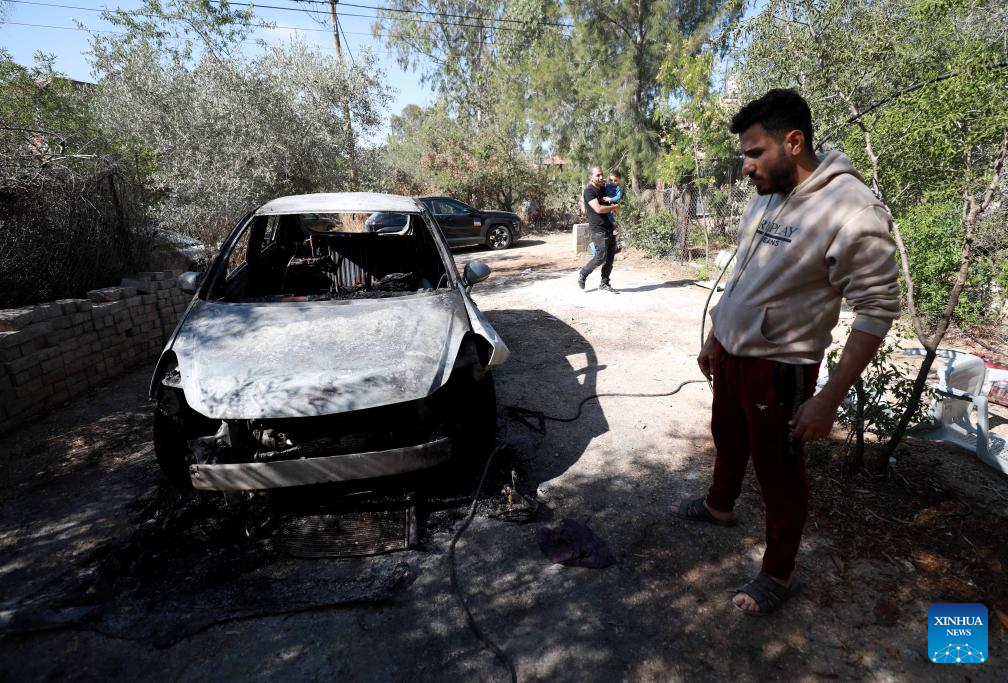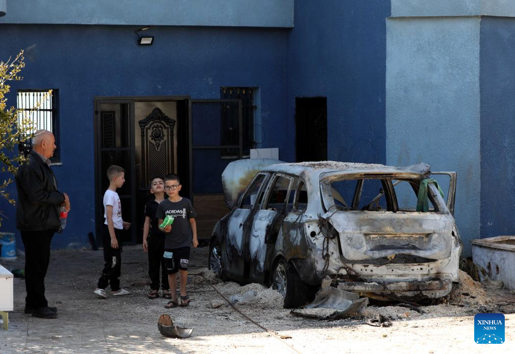 JERUSALEM, May 23 (Xinhua) -- About 40 Israeli settlers rioted in the Palestinian village of Burqin in the West Bank, burning houses and cars, Israel's state-owned Kan TV News reported on Friday.