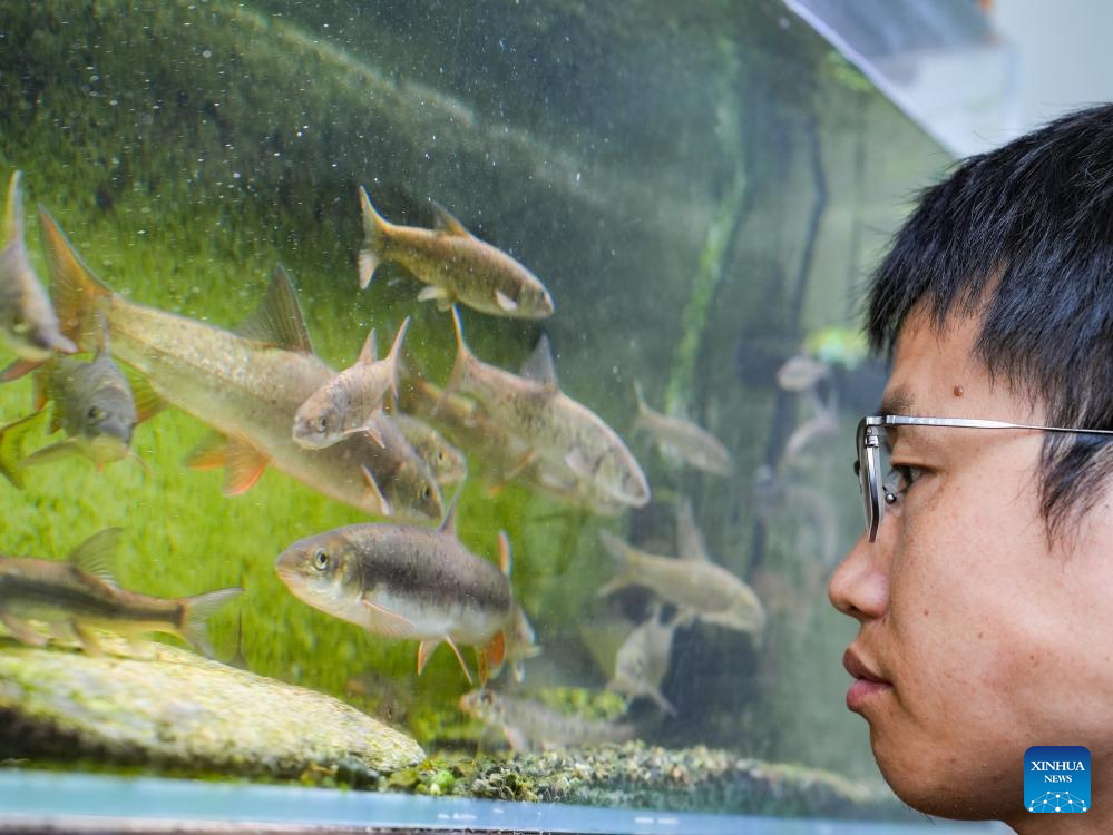 Yu Yi (L) discusses classification of fish with a colleague at the Fisheries Institute of Sichuan Academy of Agricultural Sciences in Chengdu, southwest China's Sichuan Province, May 6, 2025. In the laboratory of Fisheries Institute of Sichuan Academy of Agricultural Sciences, Yu Yi, a 32-year-old researcher, adjusted the macro lens and took an "ID photo" of a newly acquired native freshwater fish. This is the 498th Chinese native freshwater fish recorded by him, which is one step closer to his goal of "photographing all Chinese native freshwater fish".